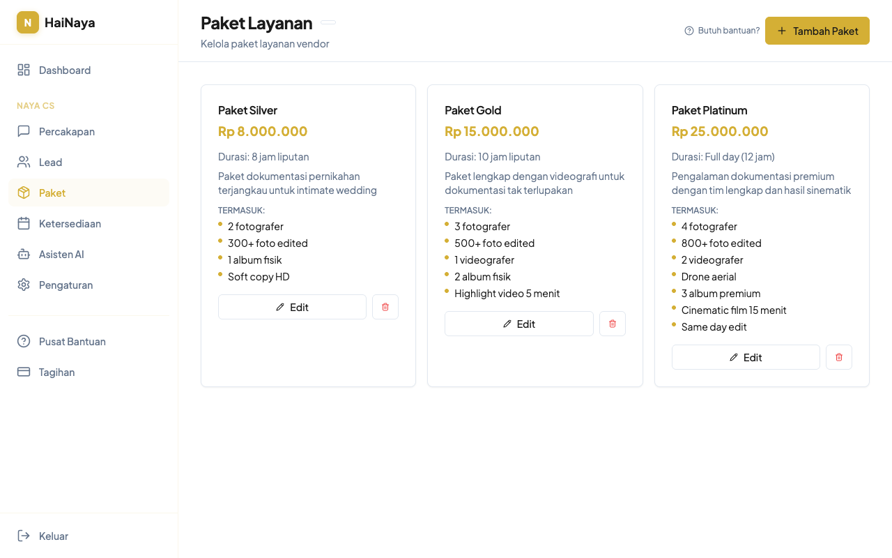 Cara menambah, mengedit, dan menghapus paket layanan yang ditawarkan ke calon klien